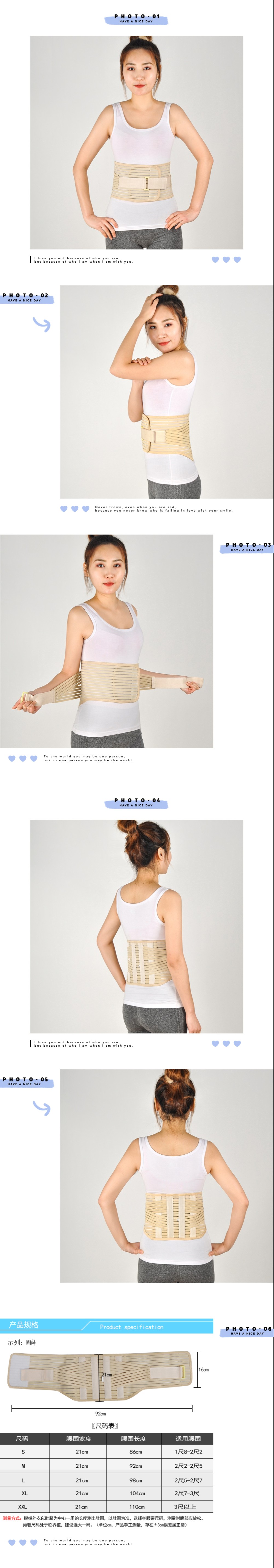 1、 根据腰围选择适合规格的护腰带;