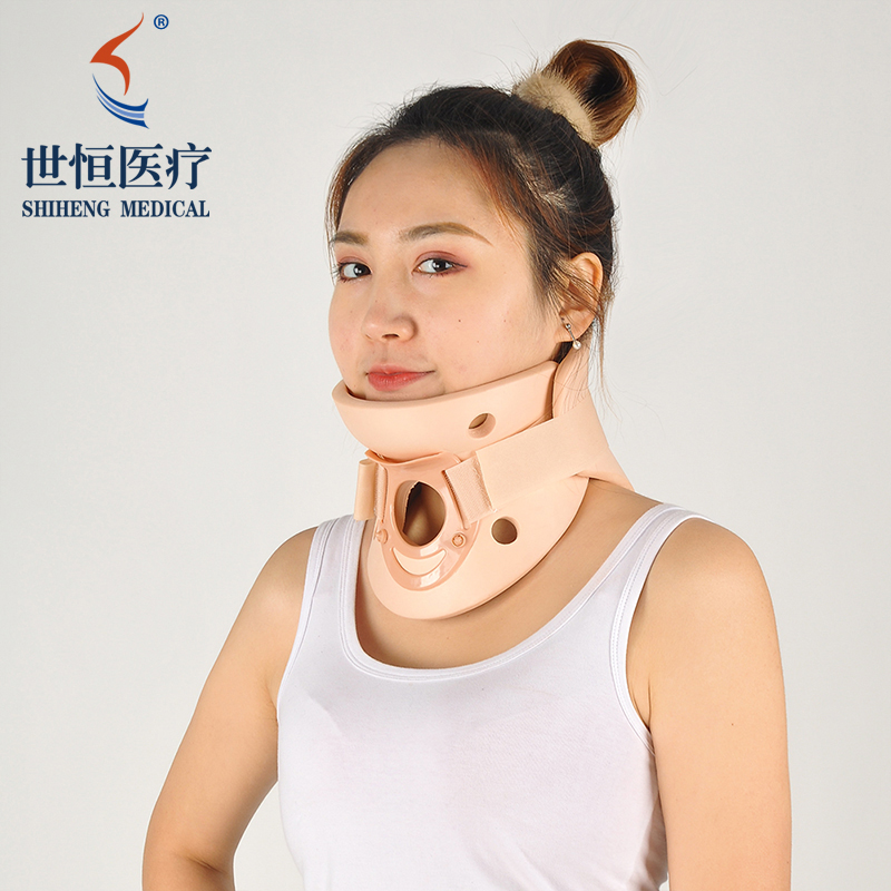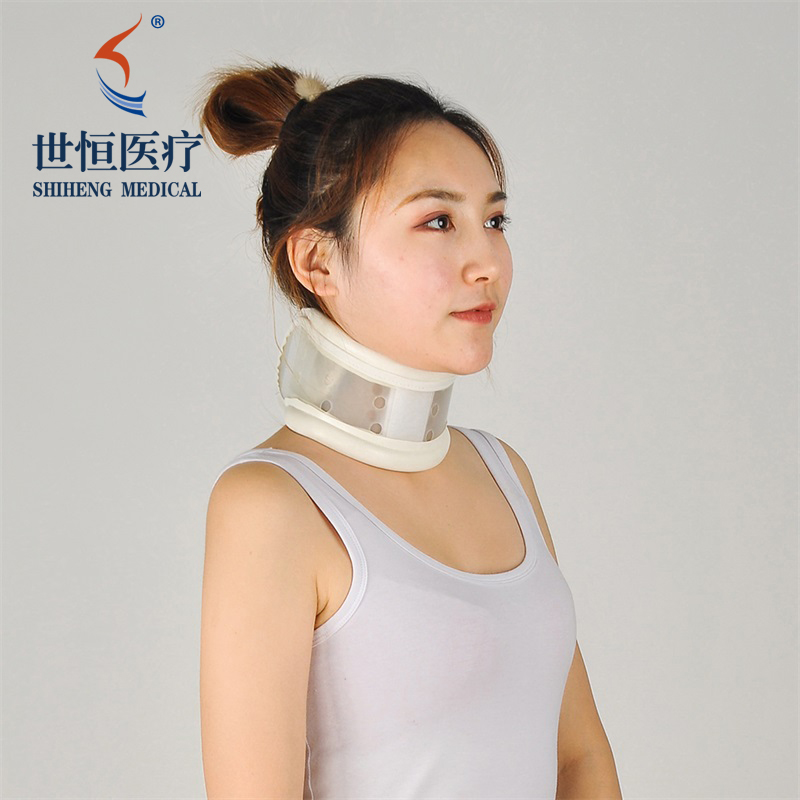 颈部支具,一般由塑料片、支具、内衬组成。分为前后两片,高度可调节。