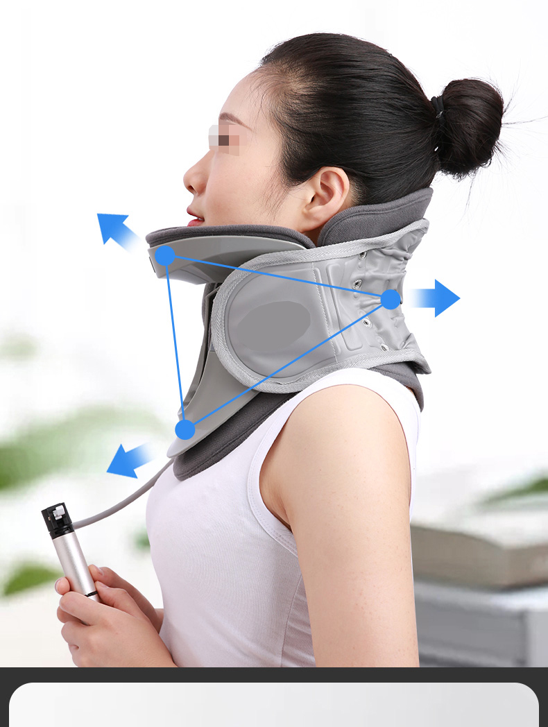使用颈托时,开口朝前,通过粘扣调节颈围大小;佩戴时间一般为15-30分钟,每日一至两次。使用完毕后缓慢放气后摘下。
