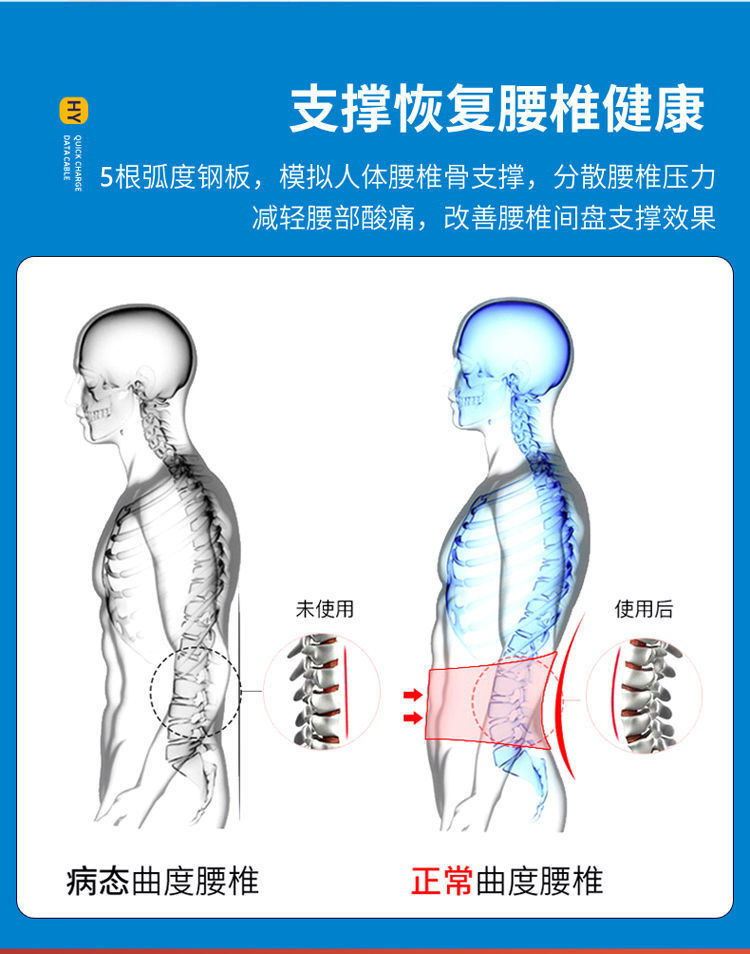 3、5根内置钢支撑,通过护腰带背部钢板进行贴合支撑腰部,减轻压力。
