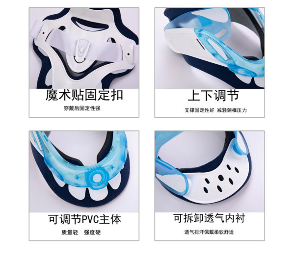 1.使用时紧贴颈椎形成 360 度保护,保护颈椎自然曲线,减少颈部,脊椎压力,可随病人病情调节升降,